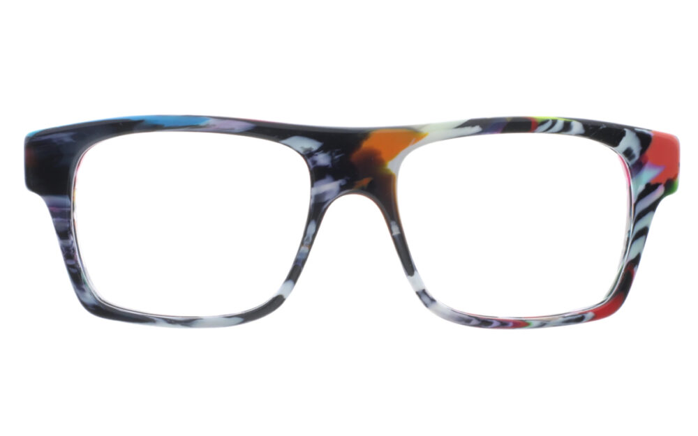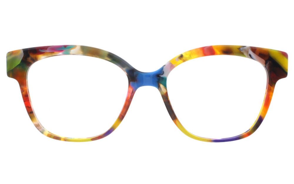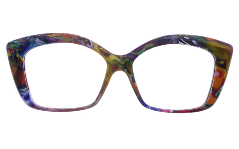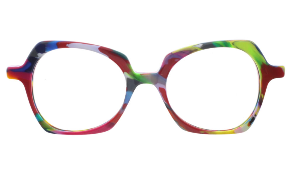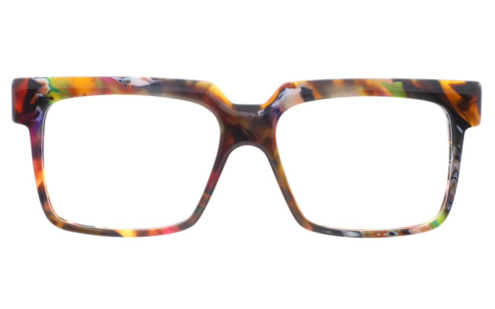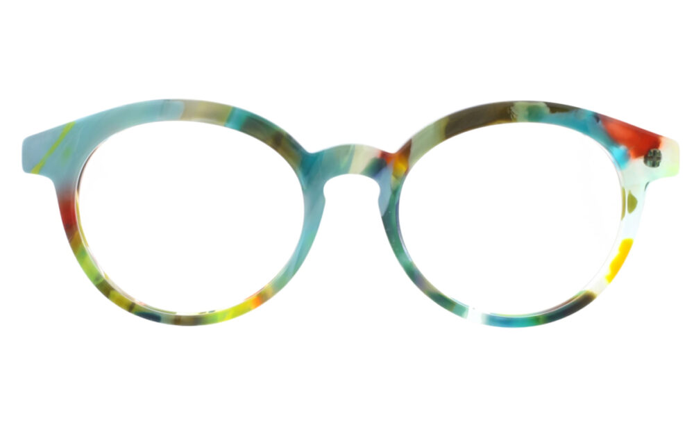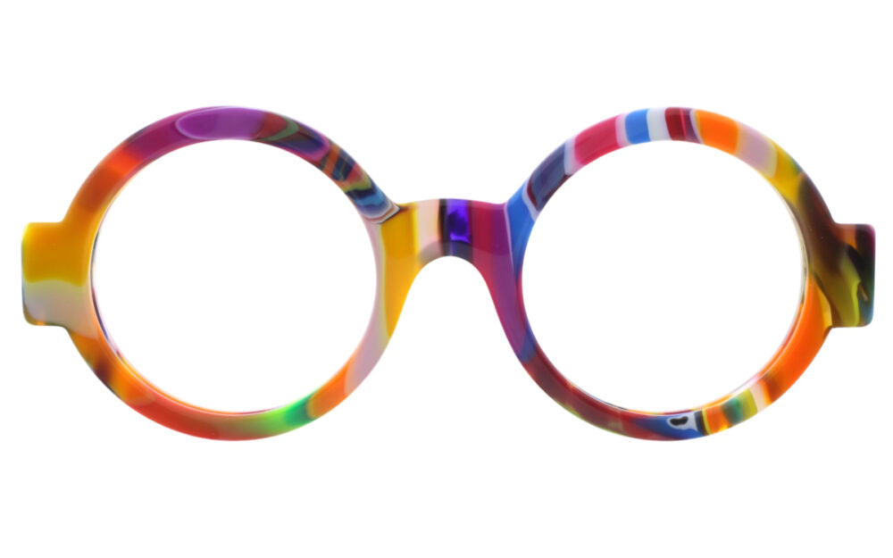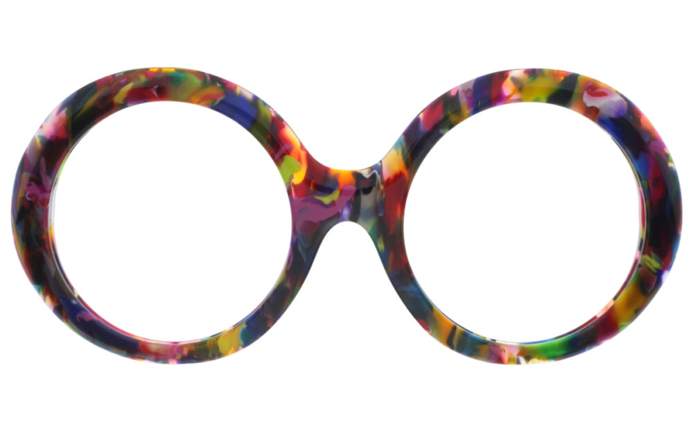 In plaats van het afval van de productie van acetaat monturen weg te gooien, verzamelt deze fabrikant het allemaal. Het word vervolgens nogmaals versmolten. Echter niet als één homogene kleur. In plaats daarvan is het een bonte verzameling van kleuren. Hier worden vervolgens weer nieuwe monturen uit vervaardigd.